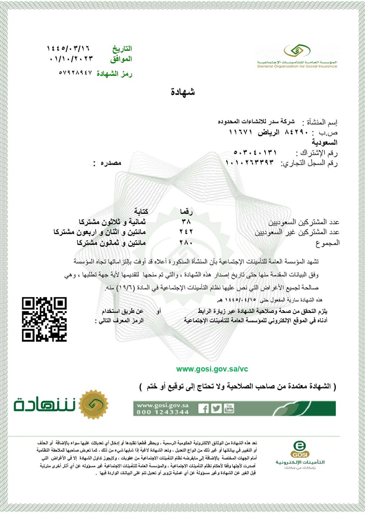 تدير سدر عملياتها من خلال نظام آلي متقدم.